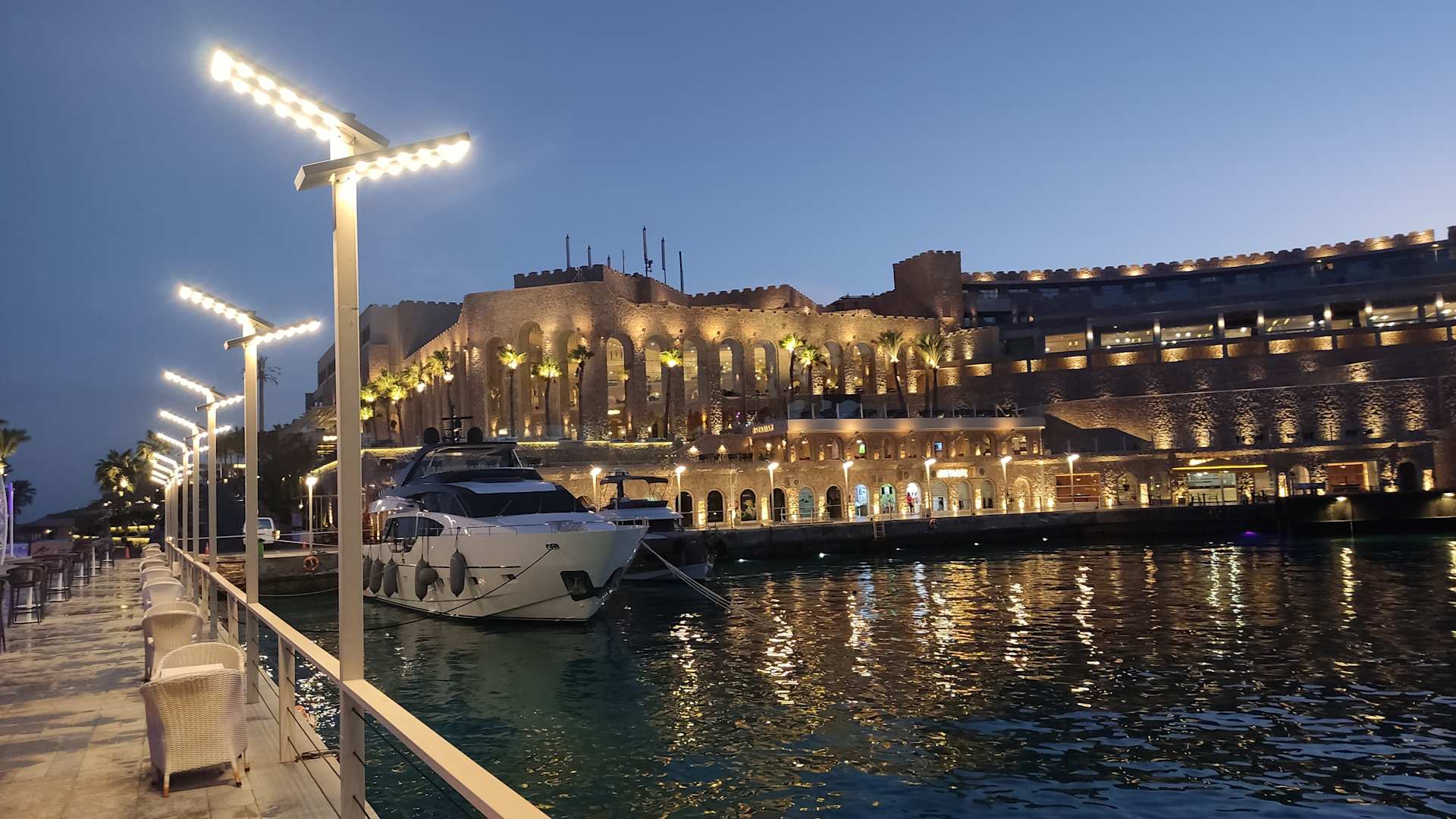 Die Marina mit dem Haupthaus