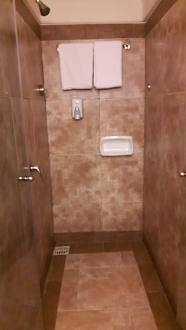 Dusche in Zimmer 8011. Diese Zimmer haben keine Fenster im Bad. Riesige Dusche.