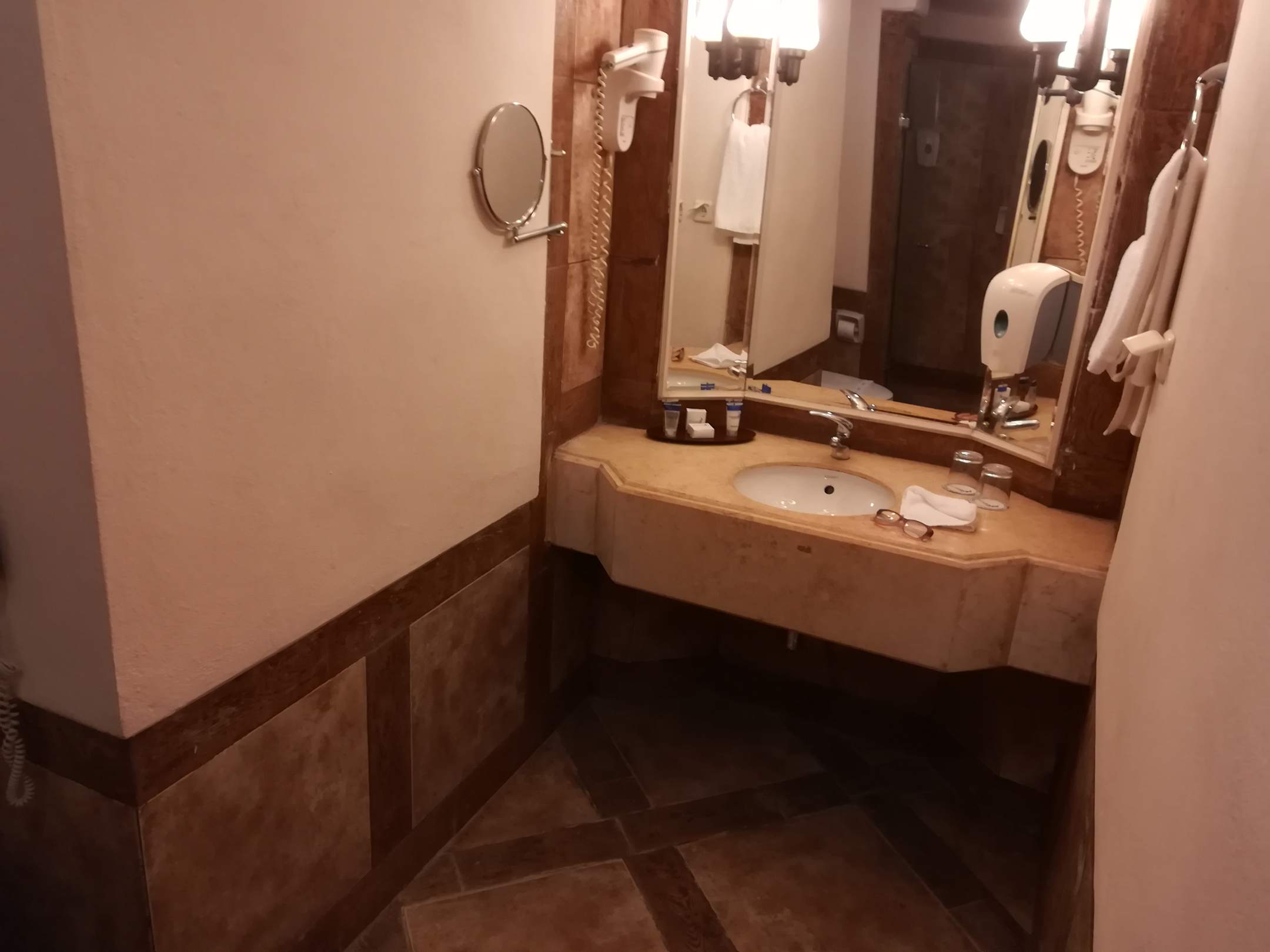 Badezimmer wirkte etwas dreckig, da die Handwerker beim Fliesenverfugen schlampig gearbeitet haben.