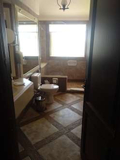 Blick ins Badezimmer. Beim Duschen hat man Meerblick.