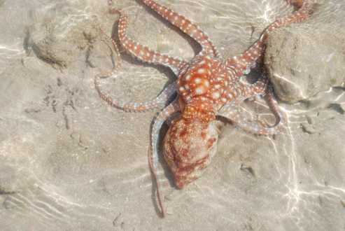 Tintenfisch bei Ebbe am Strand