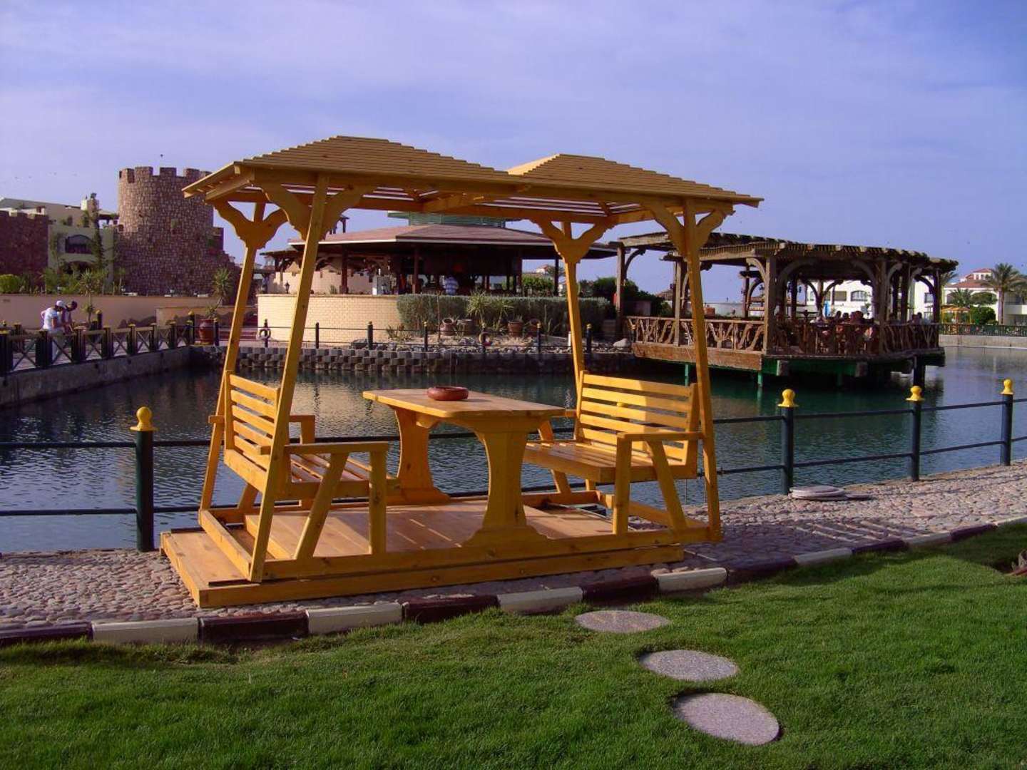 Zum chillendavon stehen mehrere um die Hotellagune, schöne, romantische Sitzmöglichkeit