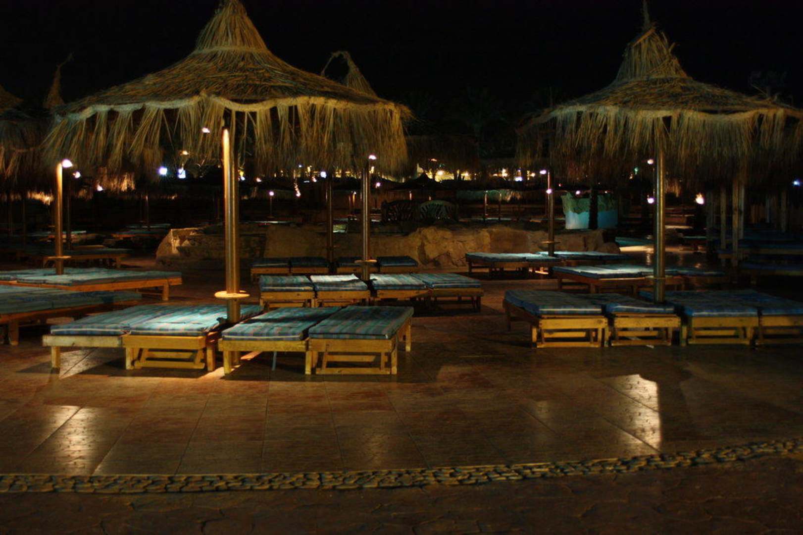 Poolliegen bei Nacht