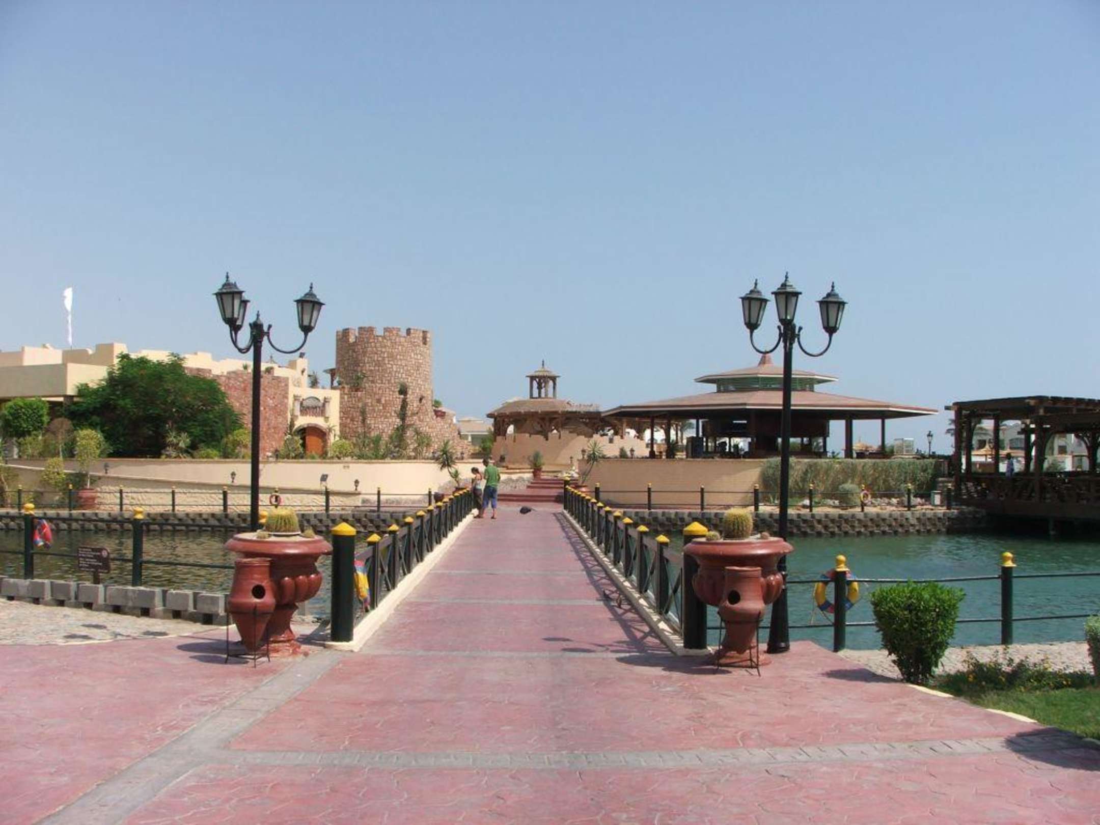 Blick auf die InselBlick auf die Insel des Castello mit Pool und Bars. Im Vordergrund die Brücke über die hoteleigene Lagune.