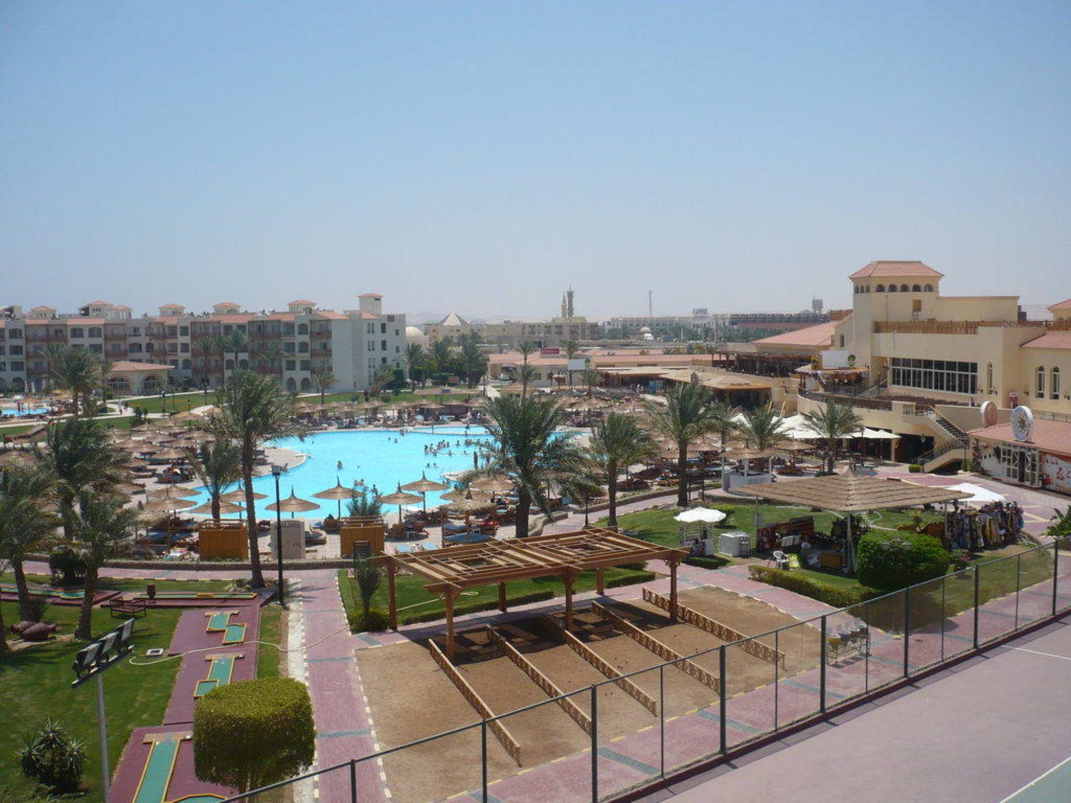 Sicht vom 6000er Block auf den Aktivepool,sowie auf die Boccia Anlage