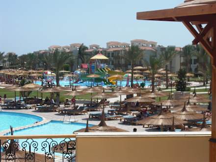 Aublick auf die Anlage vom Haupthaus Pickalbatros Dana Beach Resort - Hurghada