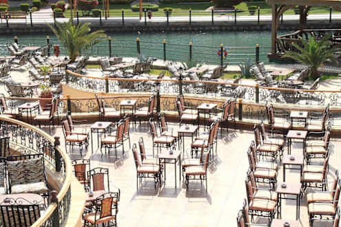 Blick auf die Sitzplätze vor dem "Castello"