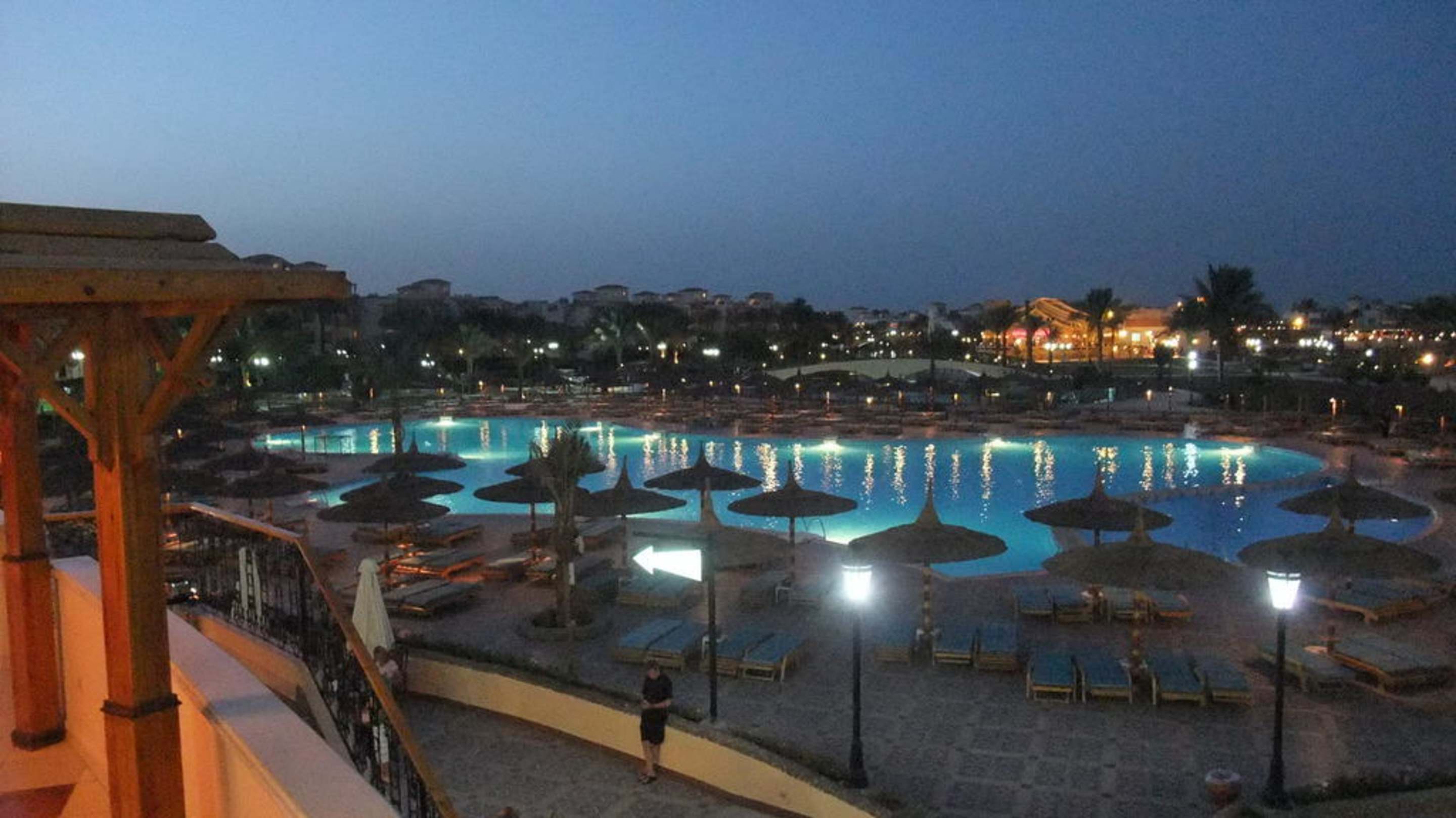 Blick zum Hauptpool (Aktivpool) am Abend