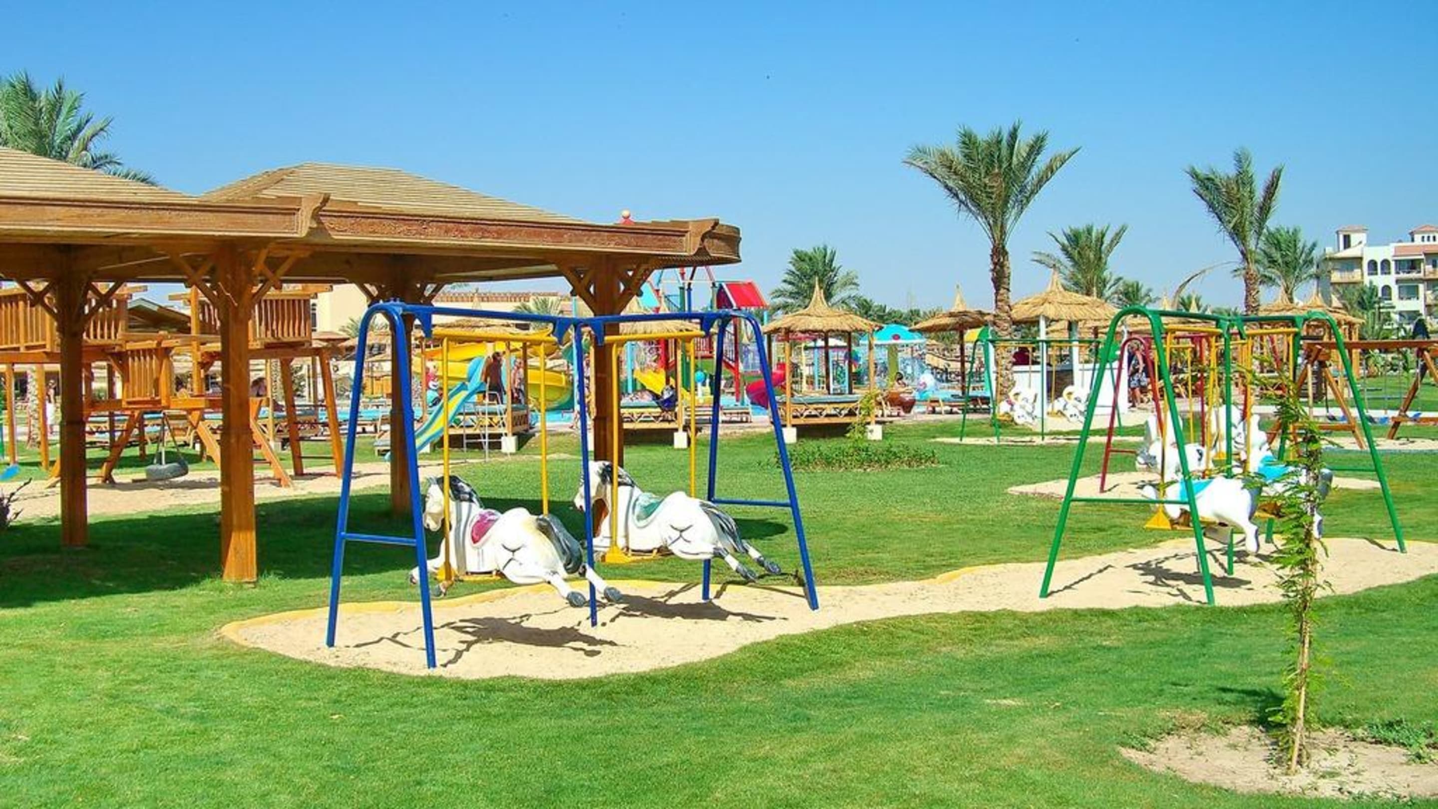 Kinderspielplatz mit Kinderpool im Hitnergrund