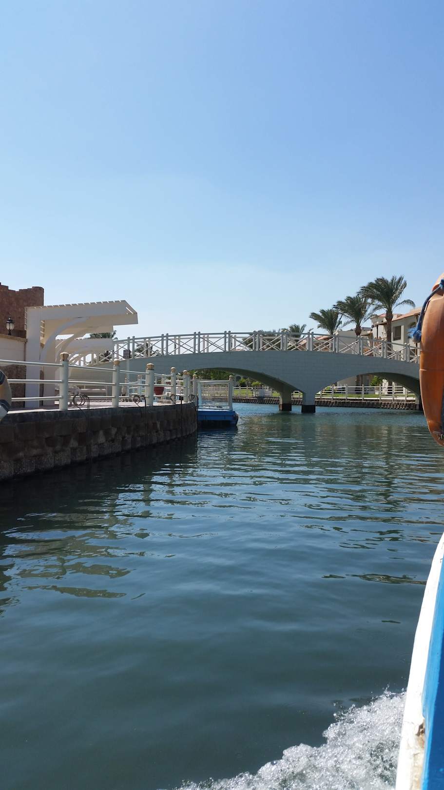 Blick von Boot. Brücke zu Castello