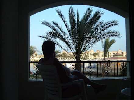 So sieht es aus, wenn man aus dem Zimmer in die Anlage schaut.