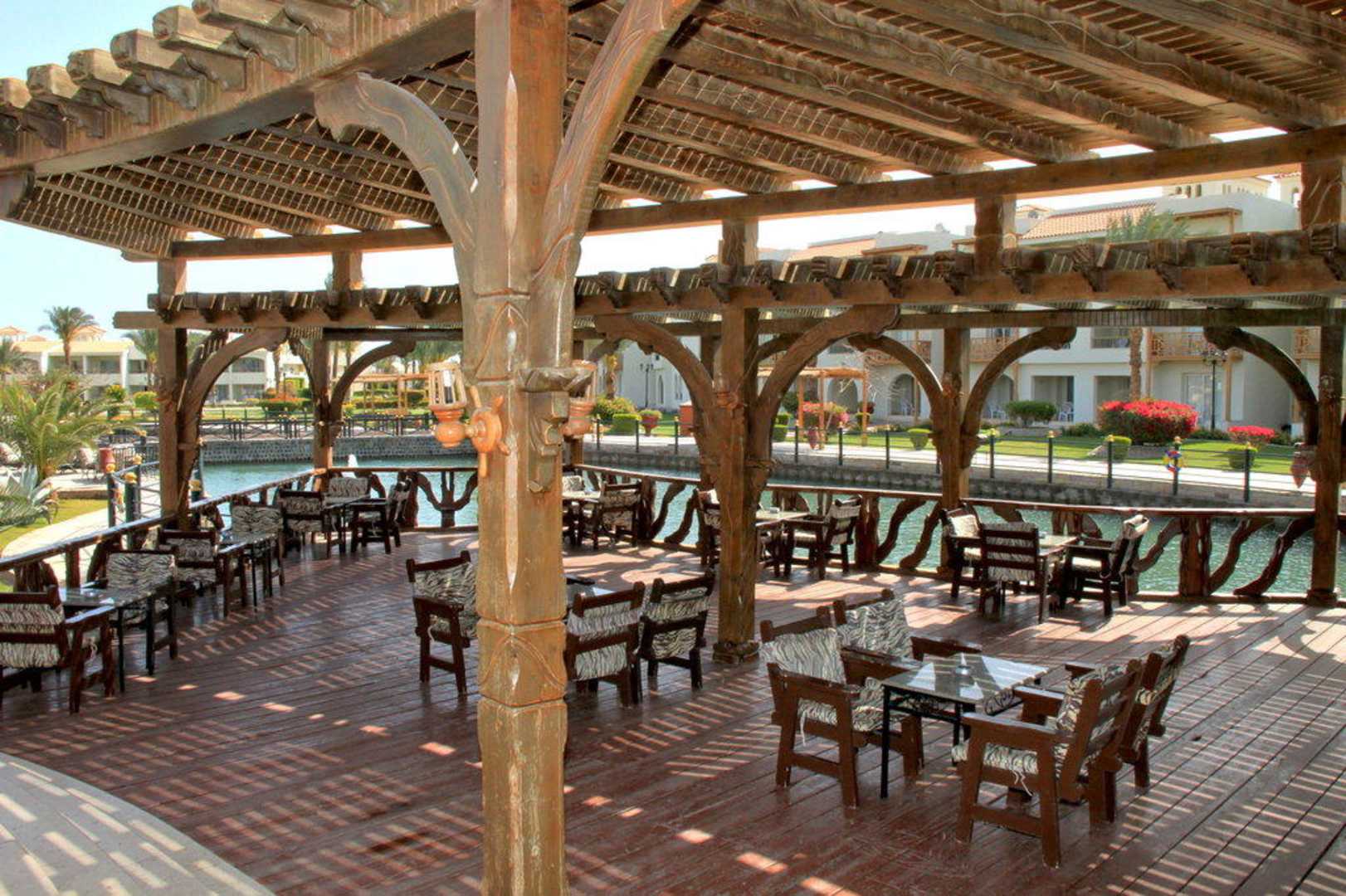 Wunderschöne Holzterrasse in der Lagune Pickalbatros Dana Beach Resort - Hurghada