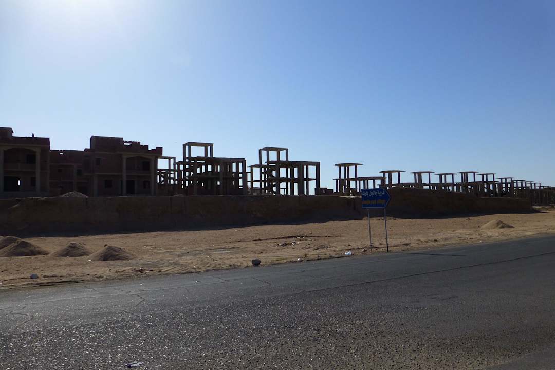 Außerhalb, gegenüber der Einfahrt eine Bauruine