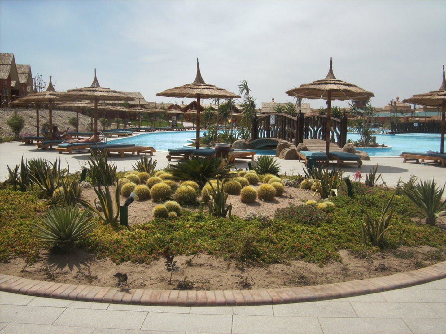 Grüner Kreisel mit Hauptpool im Hintergrund