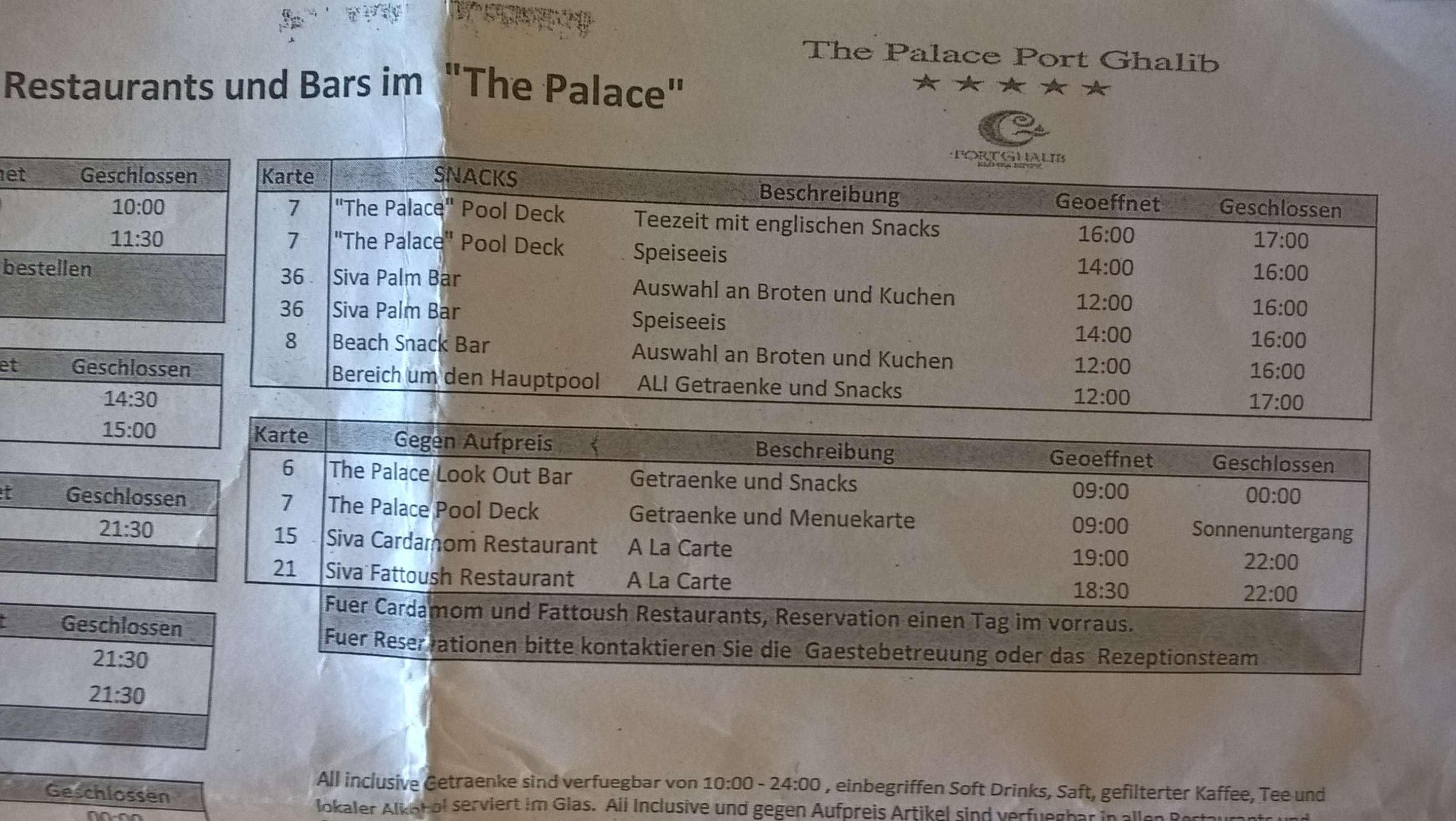 RestaurantPlan des AL INKLUSIVE KONZEPT