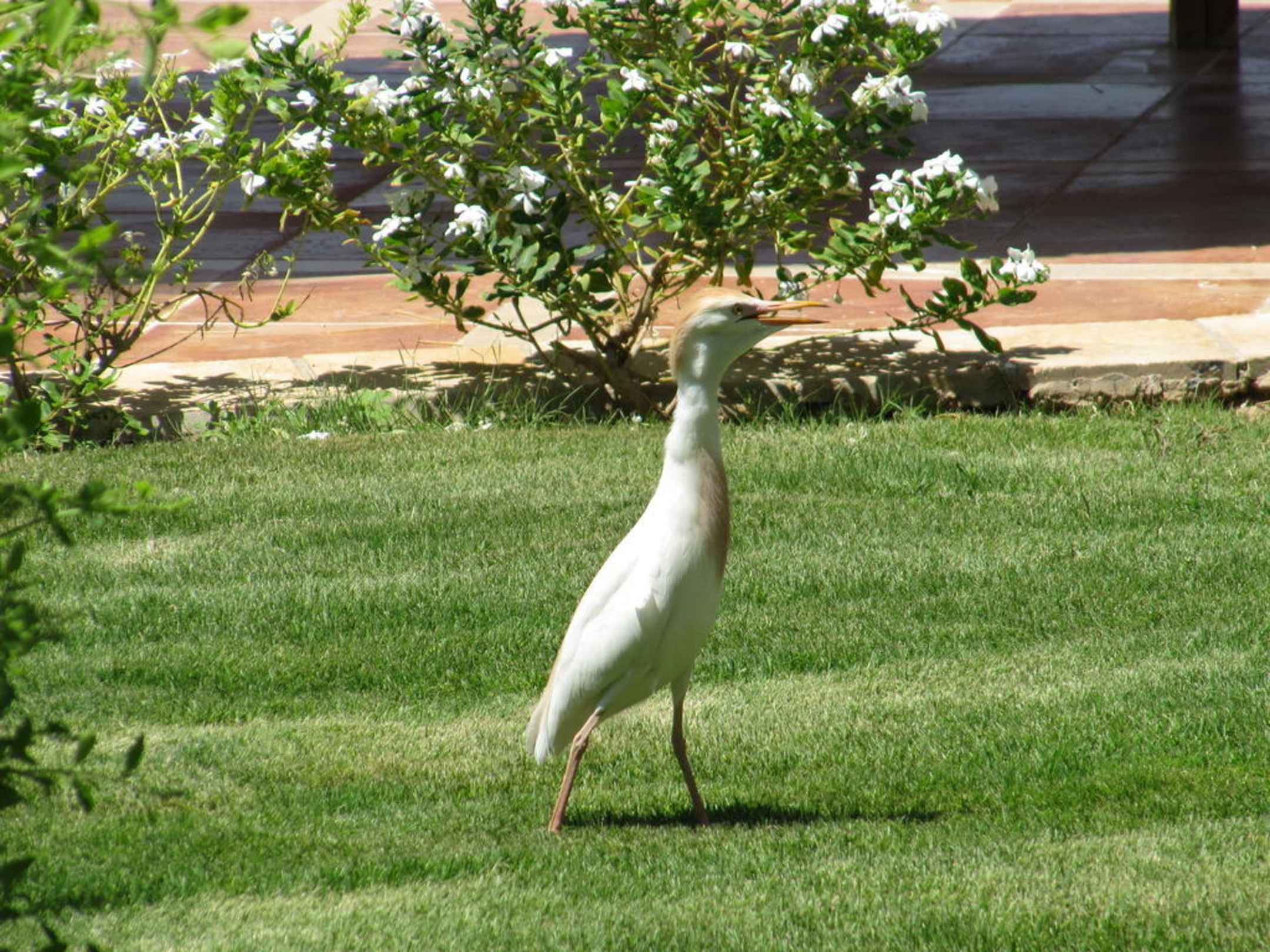 Эта птица спокойно расхаживает по территории сада в отеле и совсем кажется н боится людей.