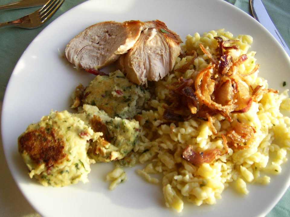 Ob ihr es glaubt oder nicht, es gibt "richtige" Spätzle mit geschmelzten Zwiebeln, Knödeln und Rahmbraten - absolut der Renner, die Leute standen wirklich Schlange! LECKER!!!
