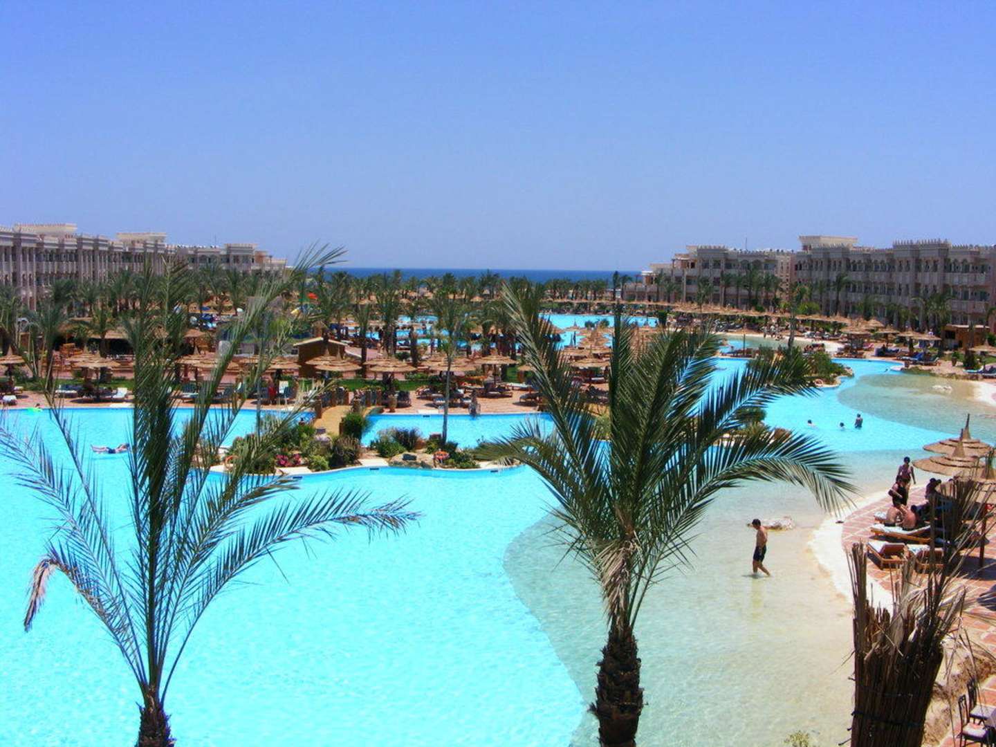 Eine traumhafte Aussicht über die Poollandschaft.