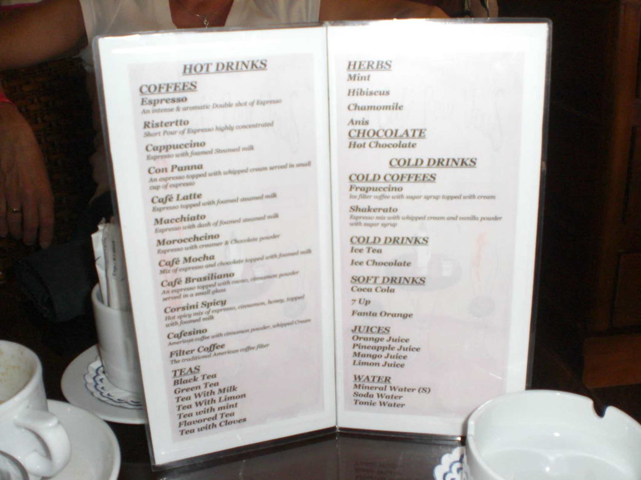 Angebot im Cafe