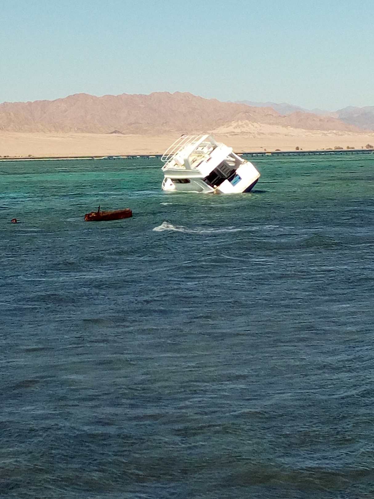 Ein gestandetes Schiff in der Bucht