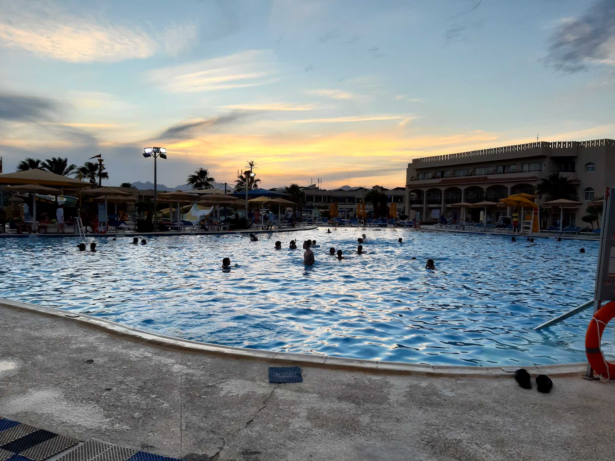 Abendstimmung am beheizten Pool