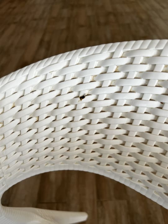 Kot an den Stühlen im Food Court