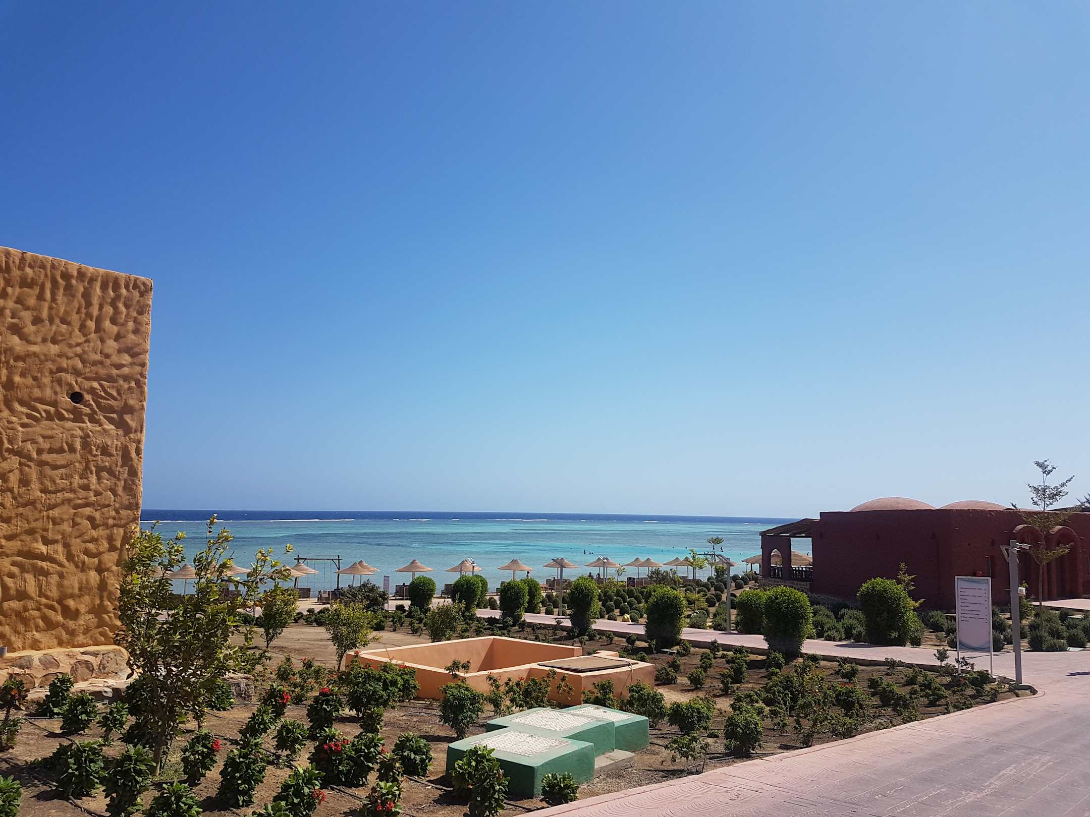 Blick zum Strand über die hier noch junge Gartenanlage