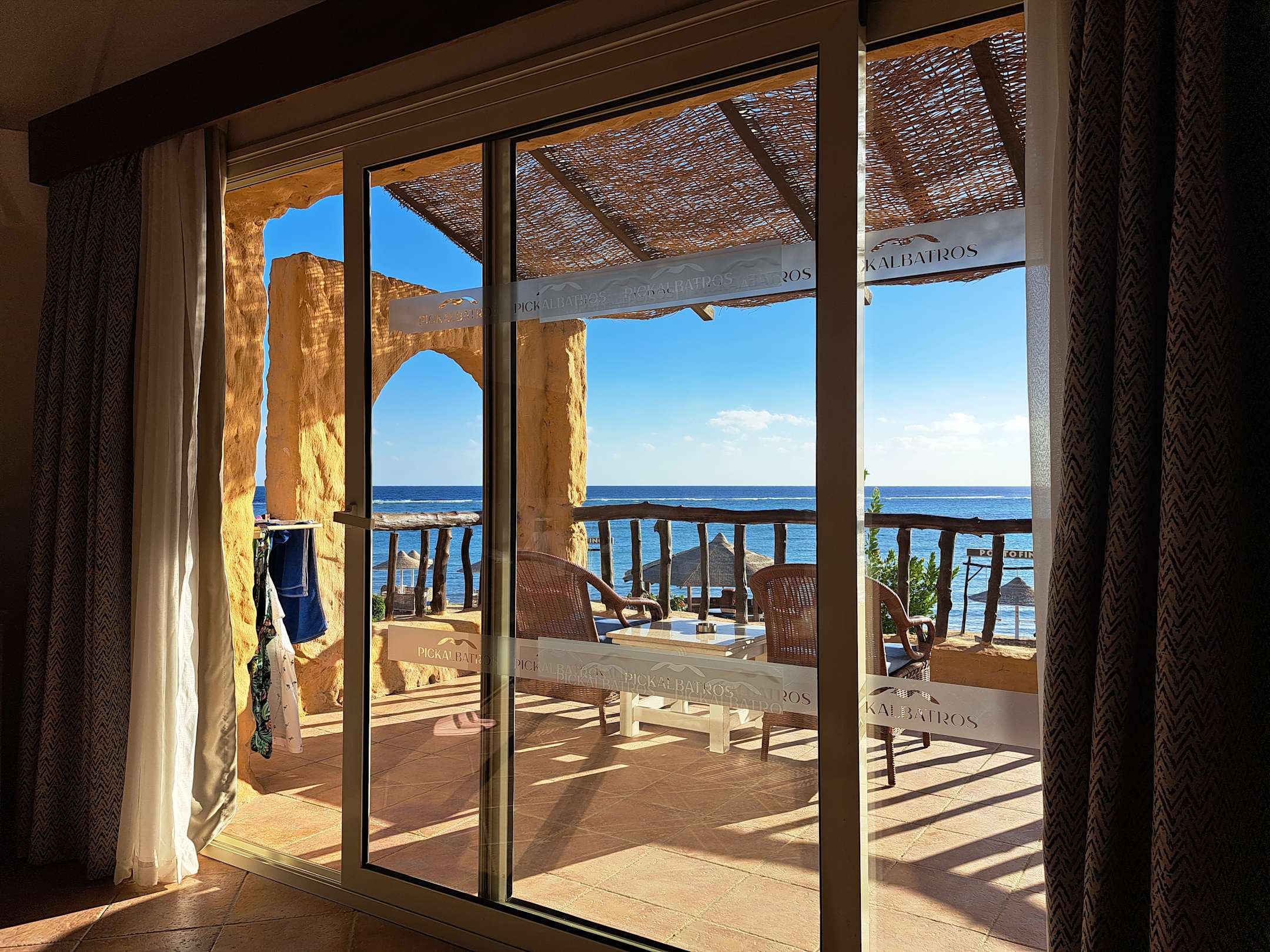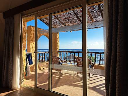 Ausblick vom Bett aus direkt zum Strand