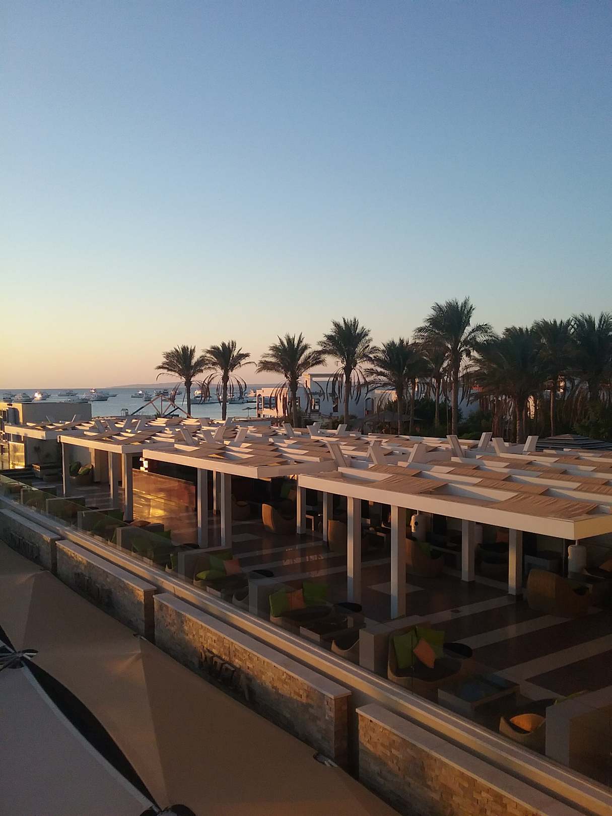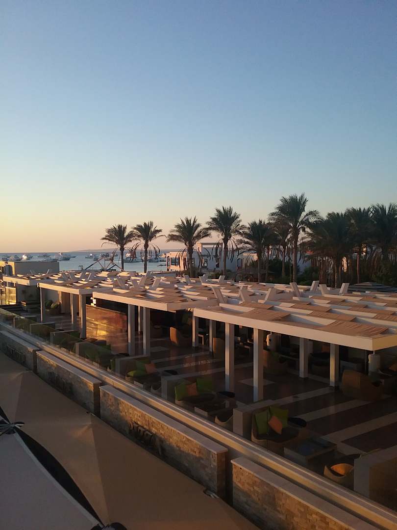 Juniorsuite Blick auf die redbar (shischatabak bar) und unten beachbar