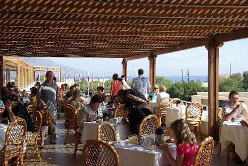 Frühstück im FreienMorgens ein gutes Frühstück auf der Terasse des Pilot Beach, Anfang Mai, etwa 20 Grad, einfach Super!!!