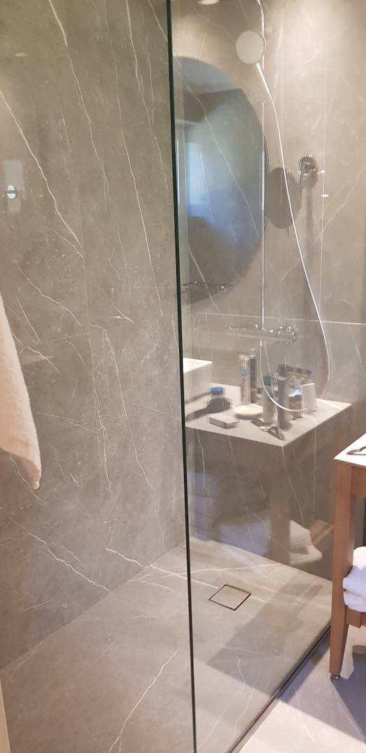 Badeizmmer mit ebenerdiger Dusche,Die Zimmer gibt es da aber auch mit Badewanne