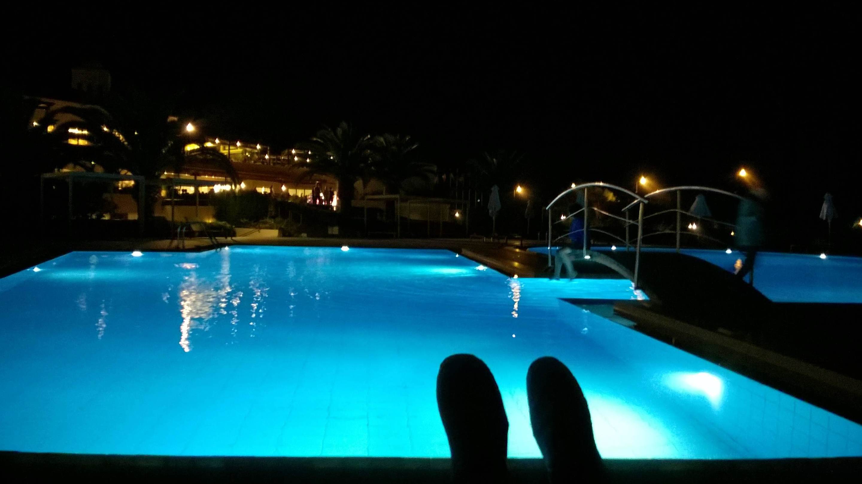 Hauptpool am Abend - Blick auf Brücke