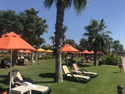 Sunbeds in the grassy garden were specially popular