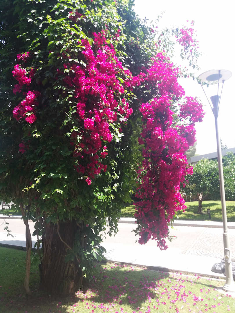 GartenanlageBouganvillia ,so herrlich anzuschauen!Orangenbäume...und ein Duft liegt in der Luft...schön