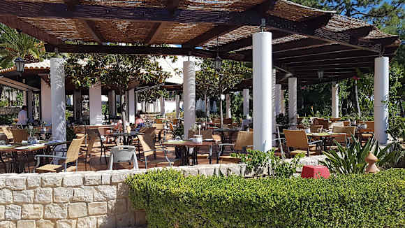 Sicht auf Frühstücksterrasse und Restaurant O PESCADOR