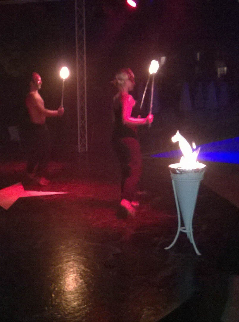 Bilder der Feuershow des Animationsteams.