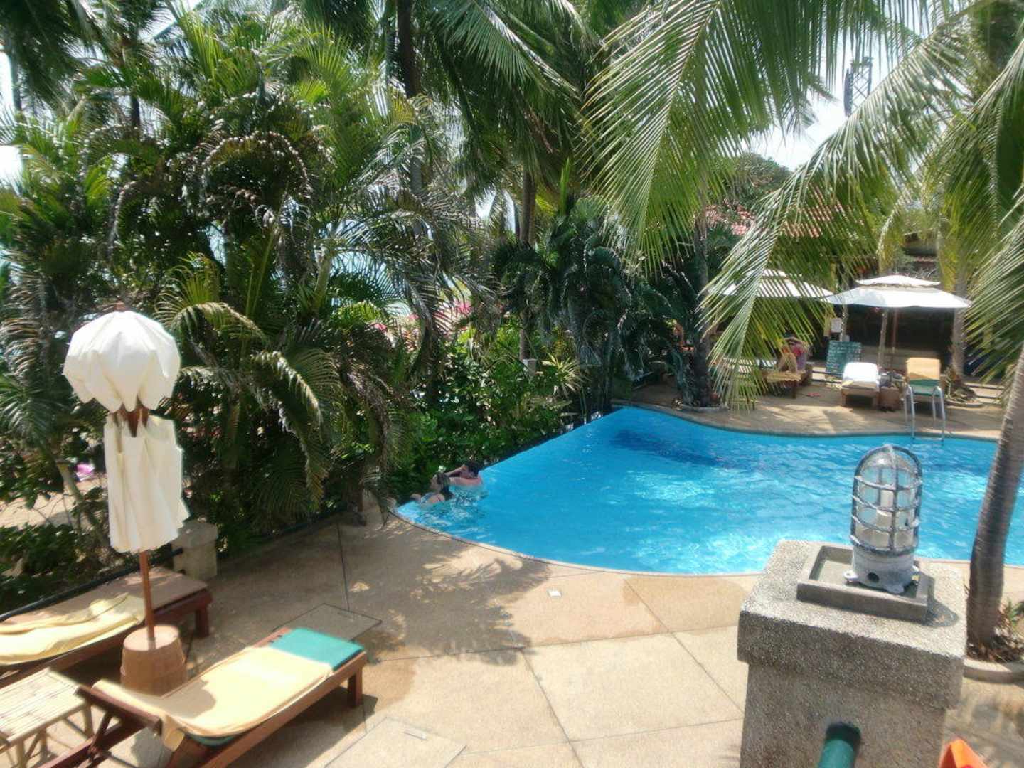 Blick vom der Terrasse zum Pool