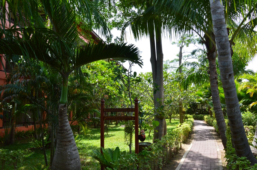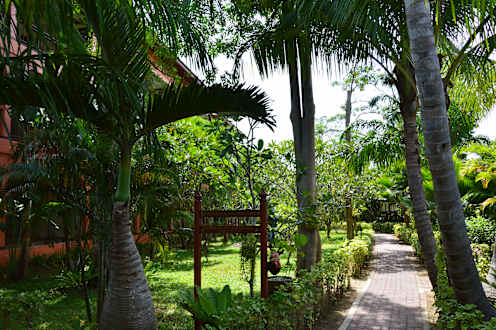 Weg durch den Palmengarten zu den Bungalows