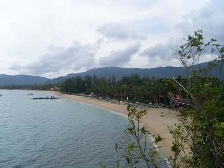 Hier stehen wir auf dem Felsen über "Black Rose". (Hinter der Bar geht eine Treppe hinauf und man hat einen herrlichen blick.) und blicken auf unsere fast menschenleere Bucht