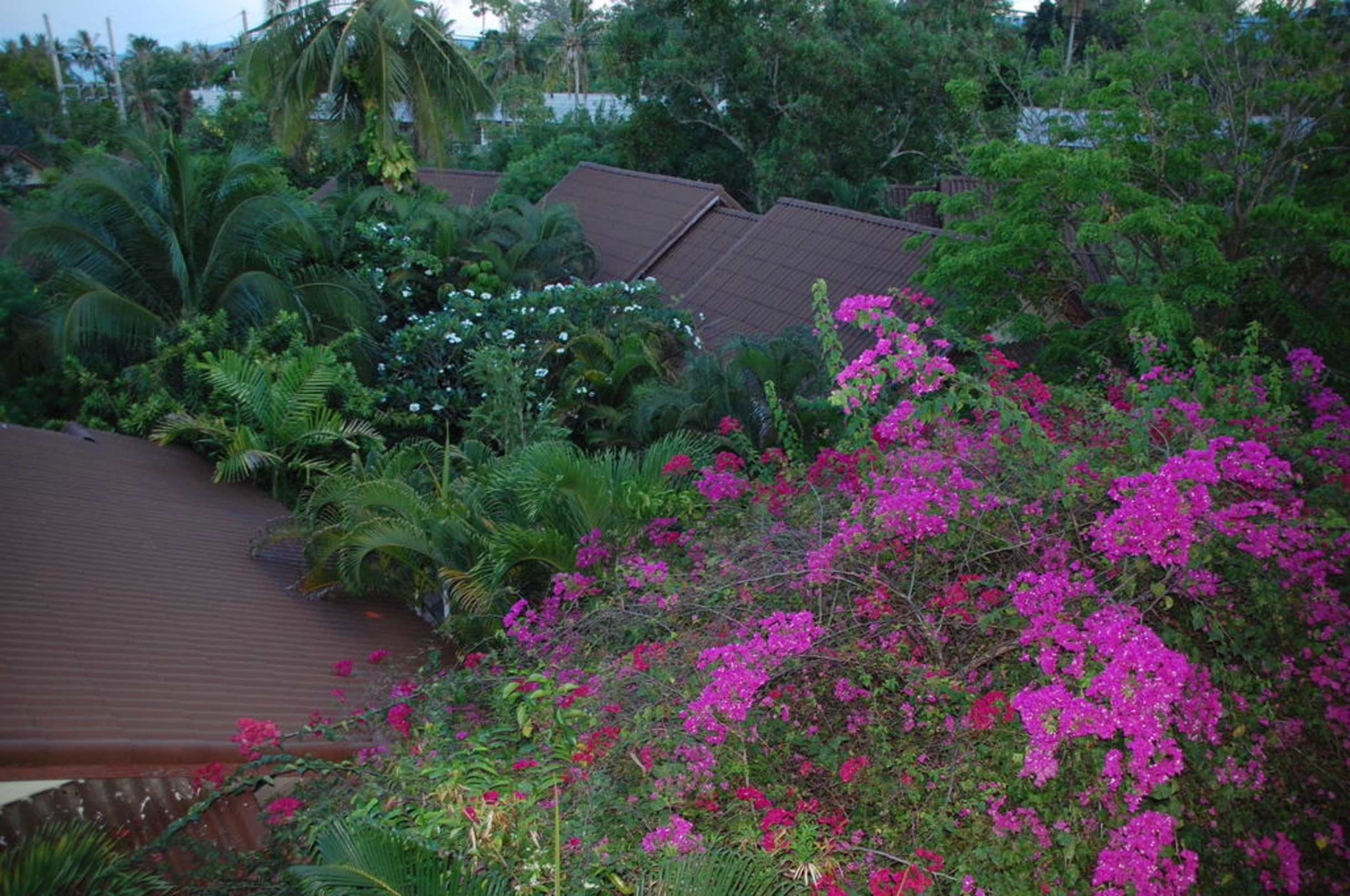 Blick vom Haupthaus auf die Bungalows