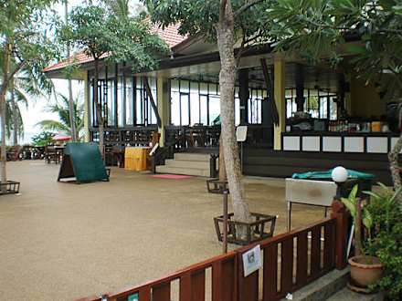 Restaurant PinnacleMan beachte den kleinen Zaun und das "Schild", dass die Hunde abhalten soll in den Restaurantbereich zu gelangen.