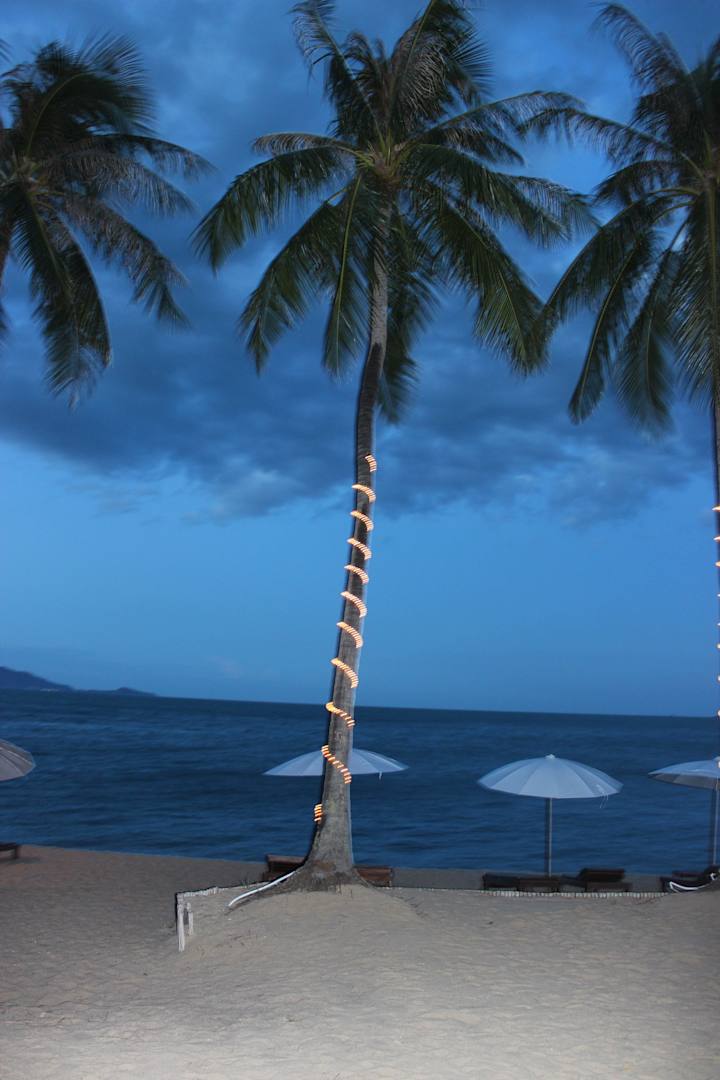 Strand mit beleuchteten Palmen