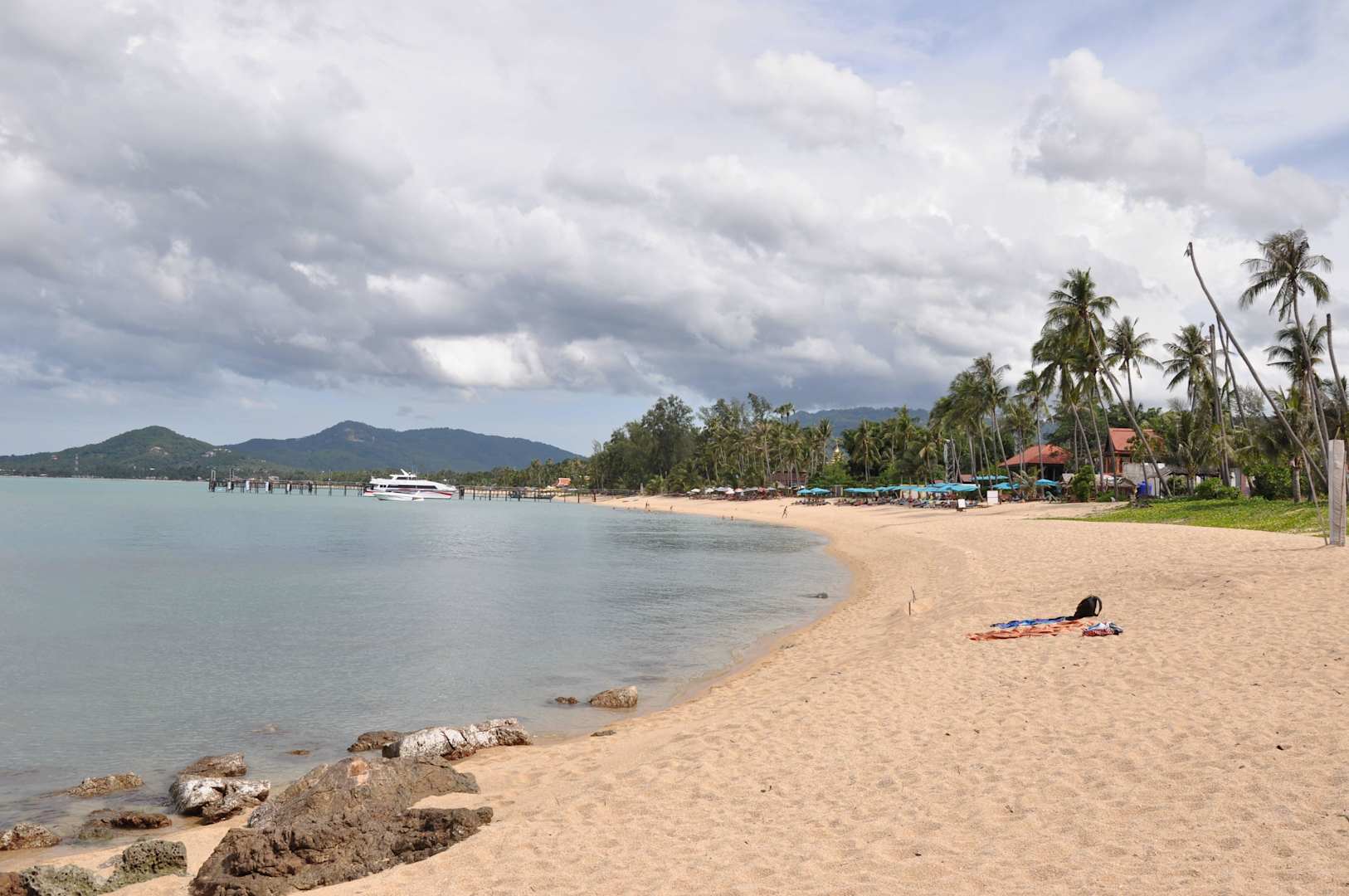 Die blauen Schirme gehören zum Hotel