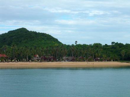 Anlage und Strand vom Boot aus