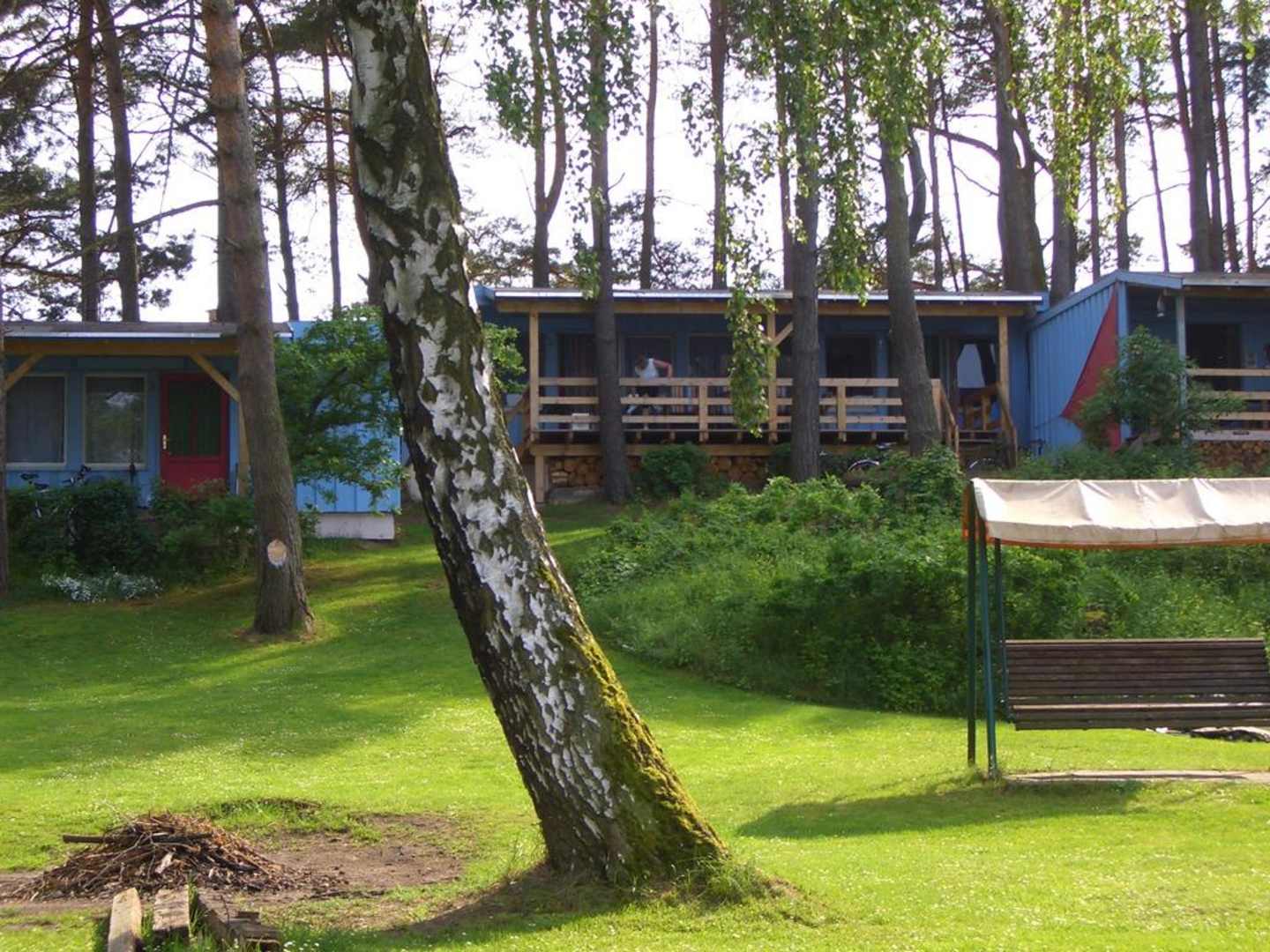 Bild zeigt die Ansicht auf die die Bungalows von der Seeseite her.