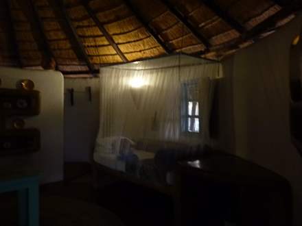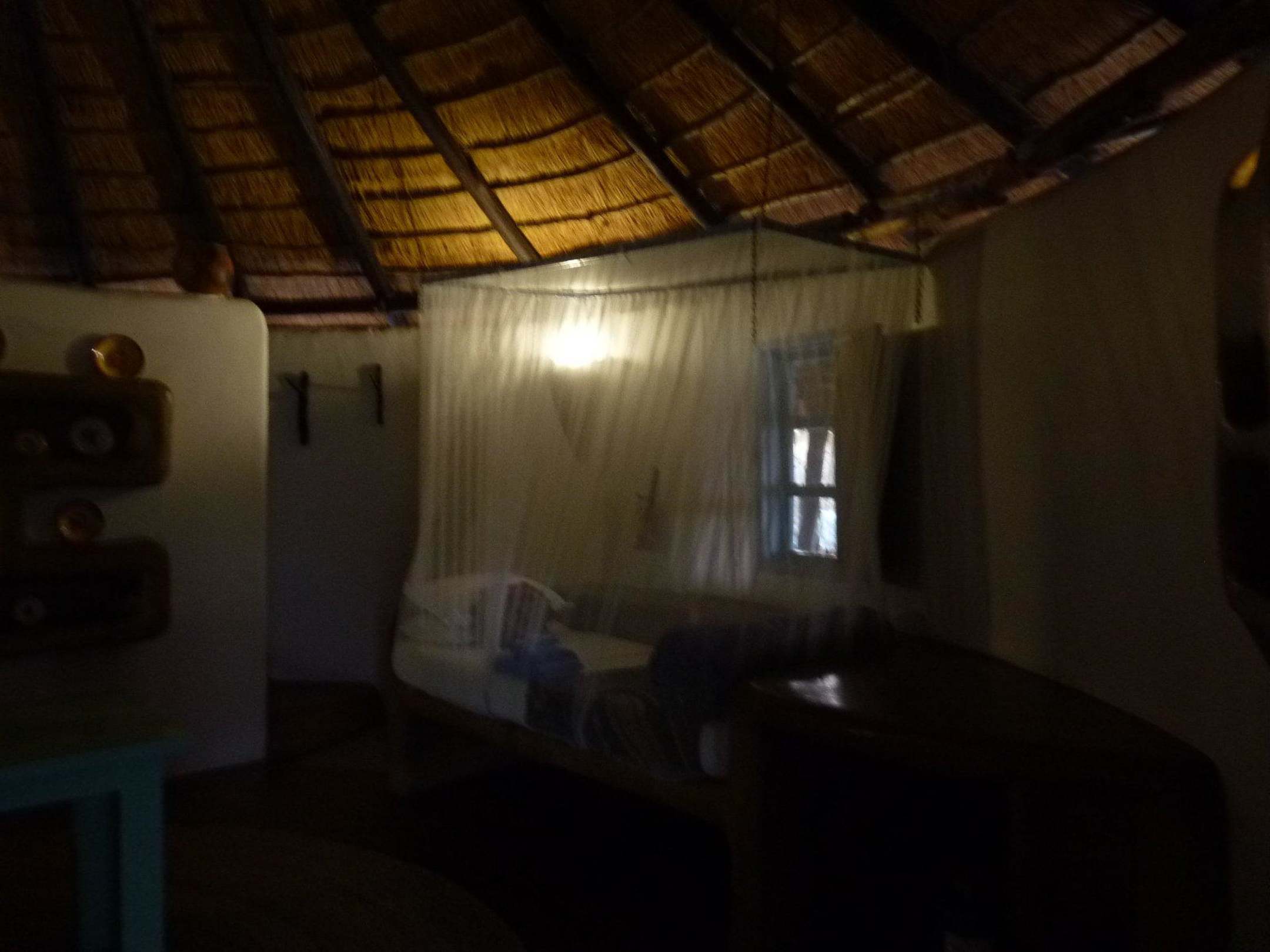 Bett mit Moskitonetz am Abend