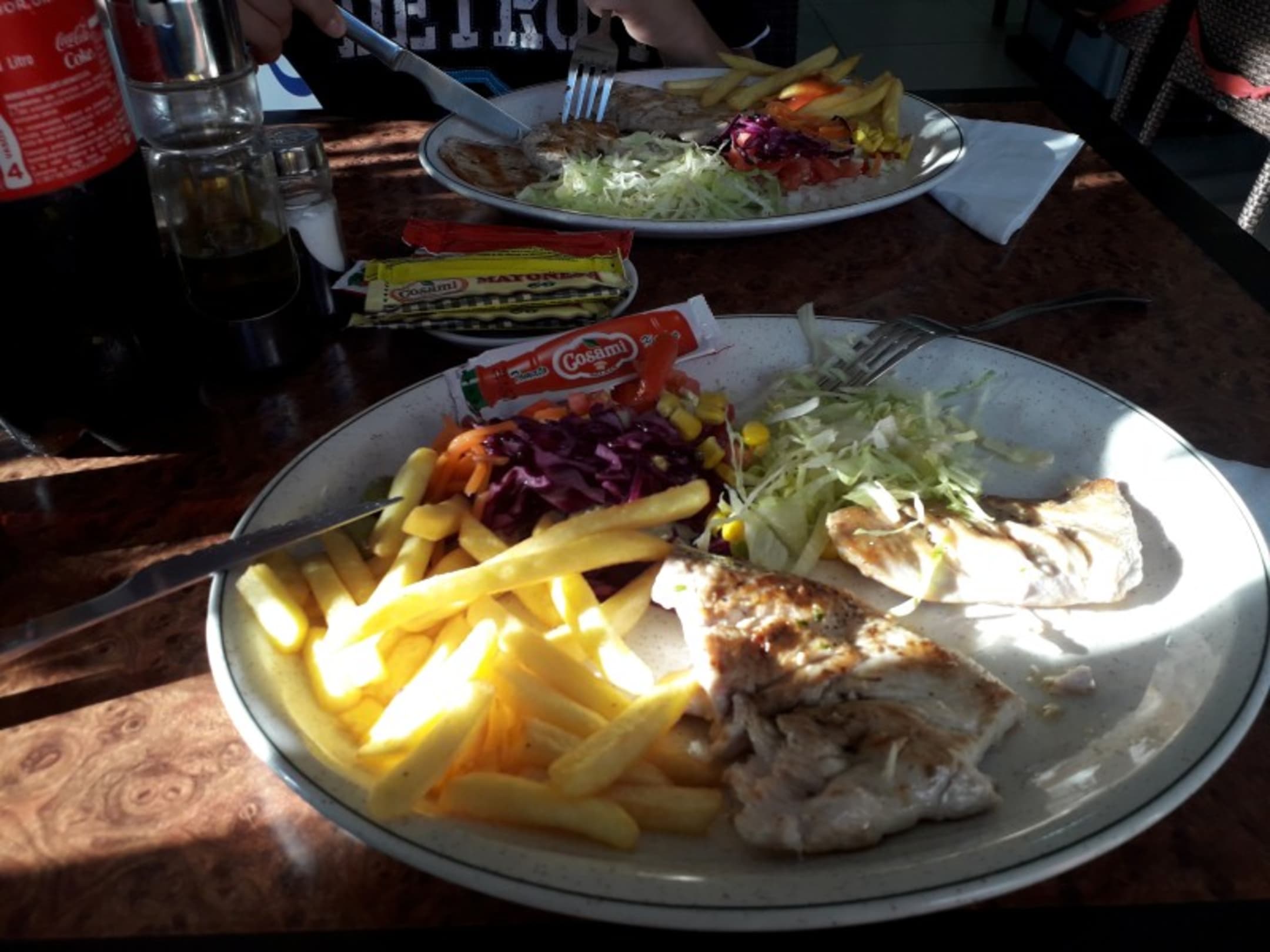 Pizzeria Darfil. Ebenfalls unmittelbar neben dem Hotel. Gutes Essen für kleines Geld. 1/2 Hähnchen, Pommes und Salat für unter 5,- €. Gekühlte Getränke (Flaschen, Dosen) und TK-Eis in großer Auswahl. Große Flasche Cola ca. 2,- €.