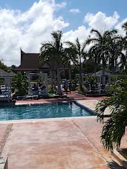 Einer der Pools, im Hintergrund ein Restaurant (asiatisch)