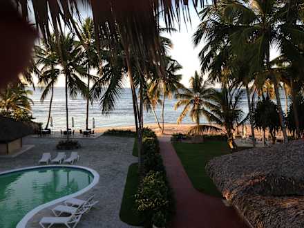 Ausblick vom Zimmer auf den Pool&Strand