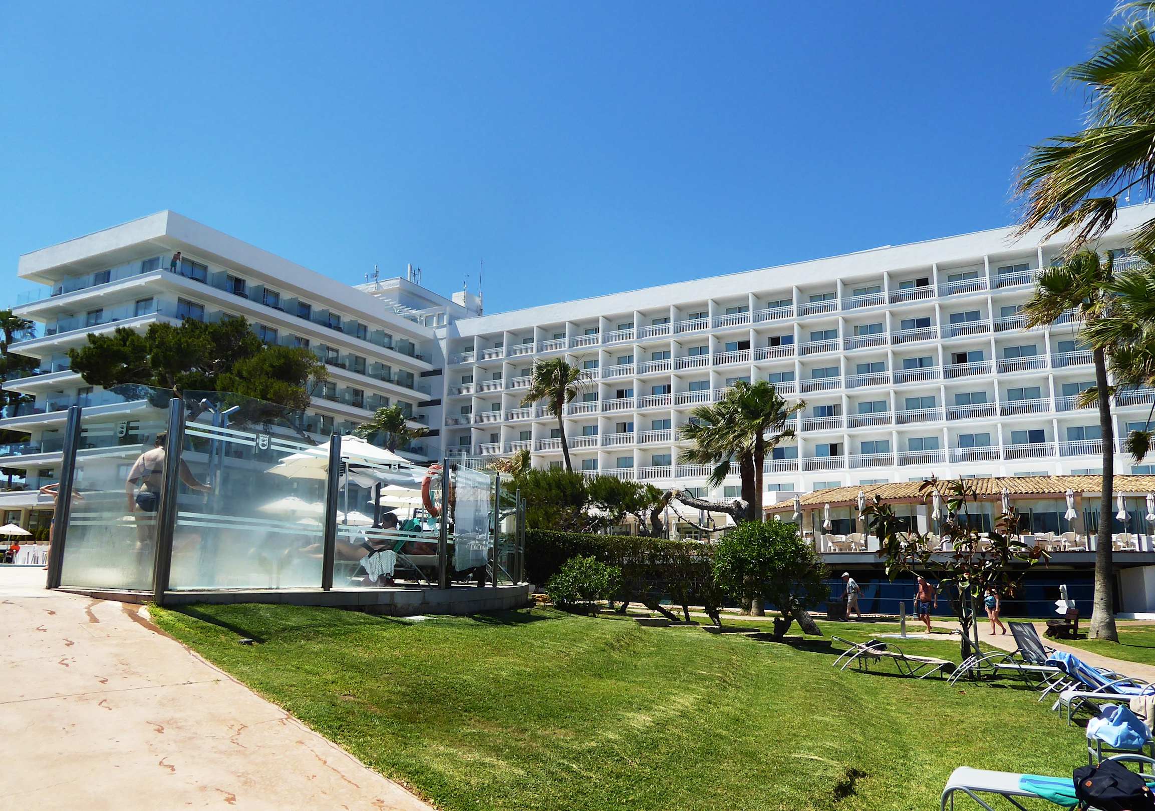 Liegewiese mit Aufgang zum Pool